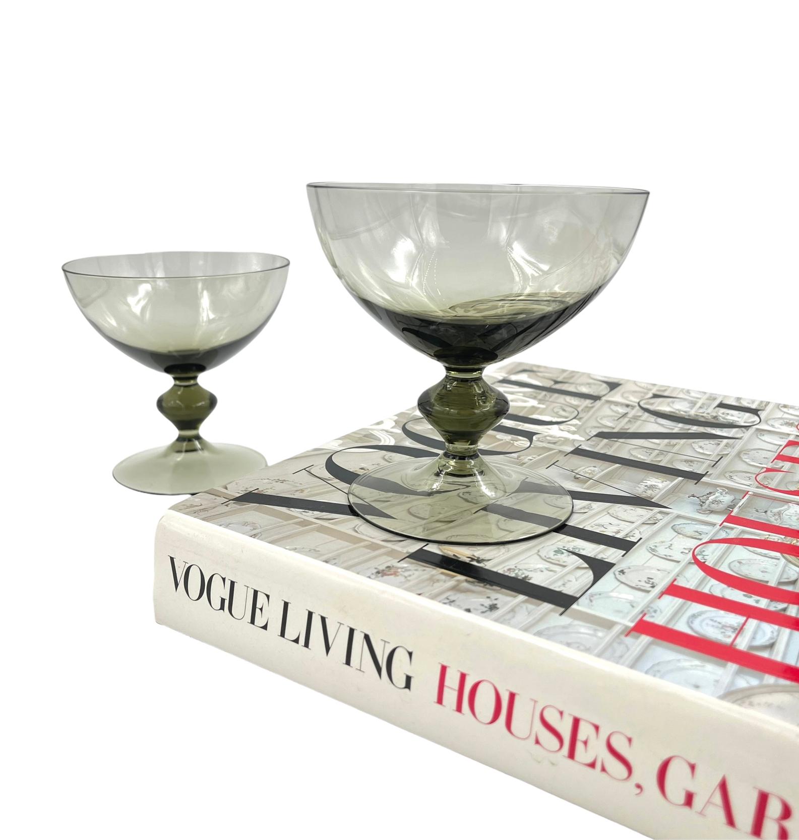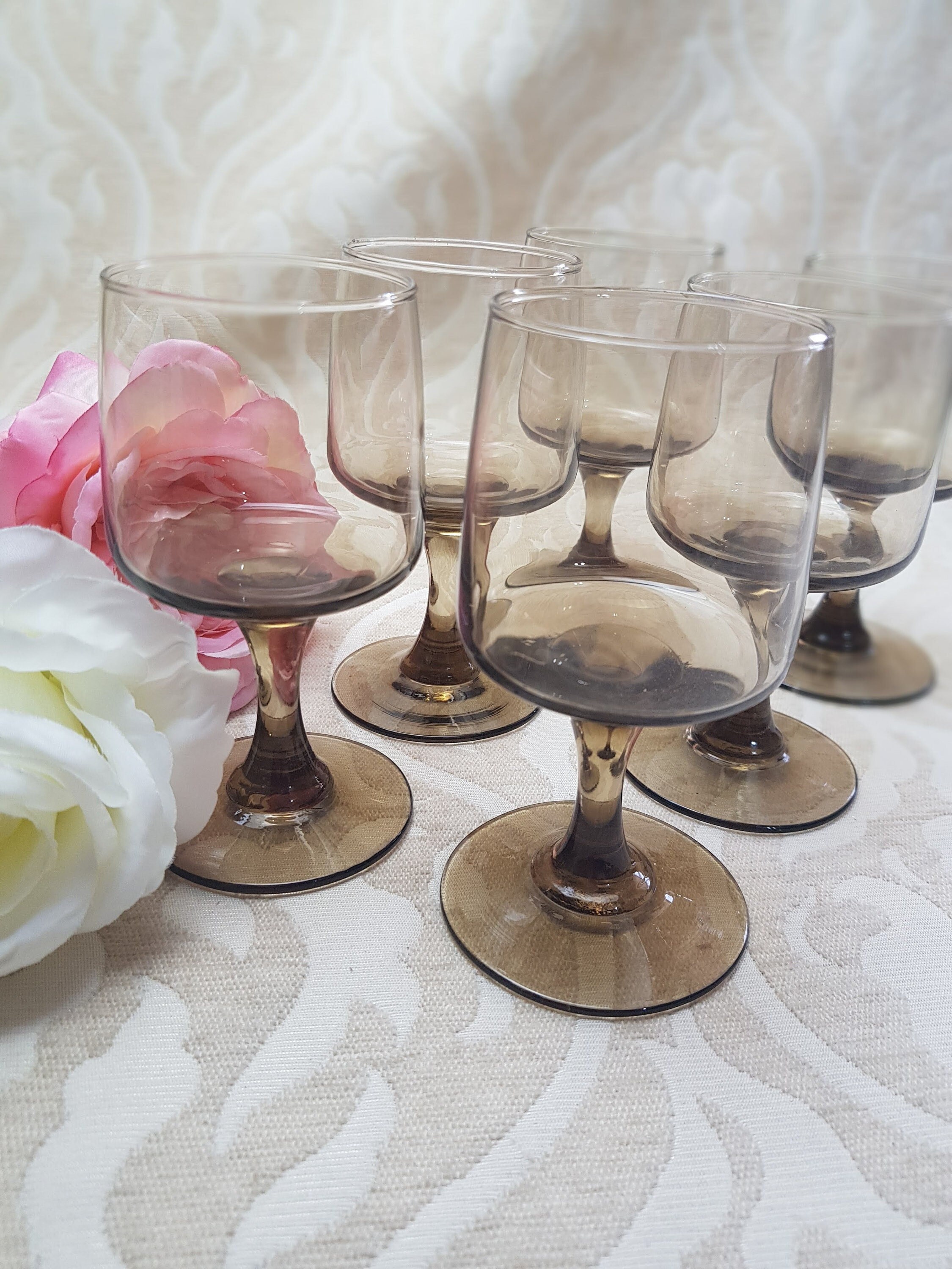 Set Of 5 Smoke Glass W Clear Base Goblets Glasses 8 3 8 Tall Ebay